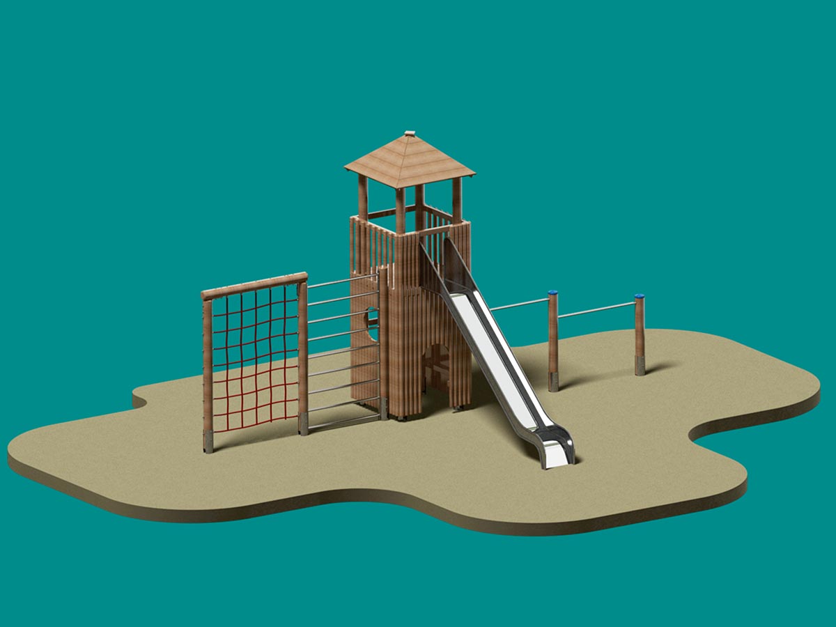 Beliebte Spielanlage für jede Menge Klettervergnügen! Für jeden öffentlichen Spielplatz oder Schulen geeignet! Der Kletter-Rutschturm Weimar ist unterhalb des Podestes verkleidet und eignet sich dadurch hervorragend als Versteck. Der „große Bruder“ von unserem Kletter-Rutsch-Turm Nienburg. Der Turm hat eine erhöhte Podesthöhe von 200 cm und macht auch größeren Kindern richtig viel Spaß.