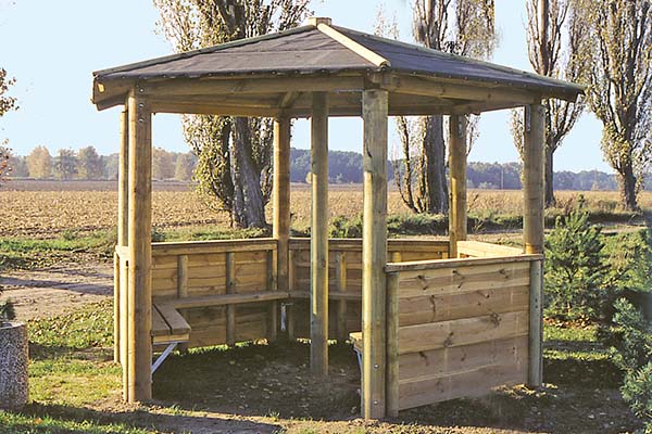 Inkl. umlaufender Sitzbank. (Material für Dacheindeckung wird mitgeliefert.)