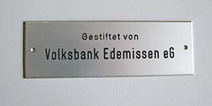 Aluminium mit schwarz gravierter Schrift u. Bohrungen.